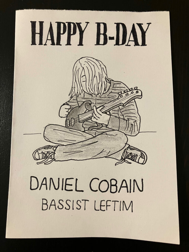 This card started with the thought of various typography, the gift for the same friend two years before, which was himself as a cardboard figure and the band Tenacious D.